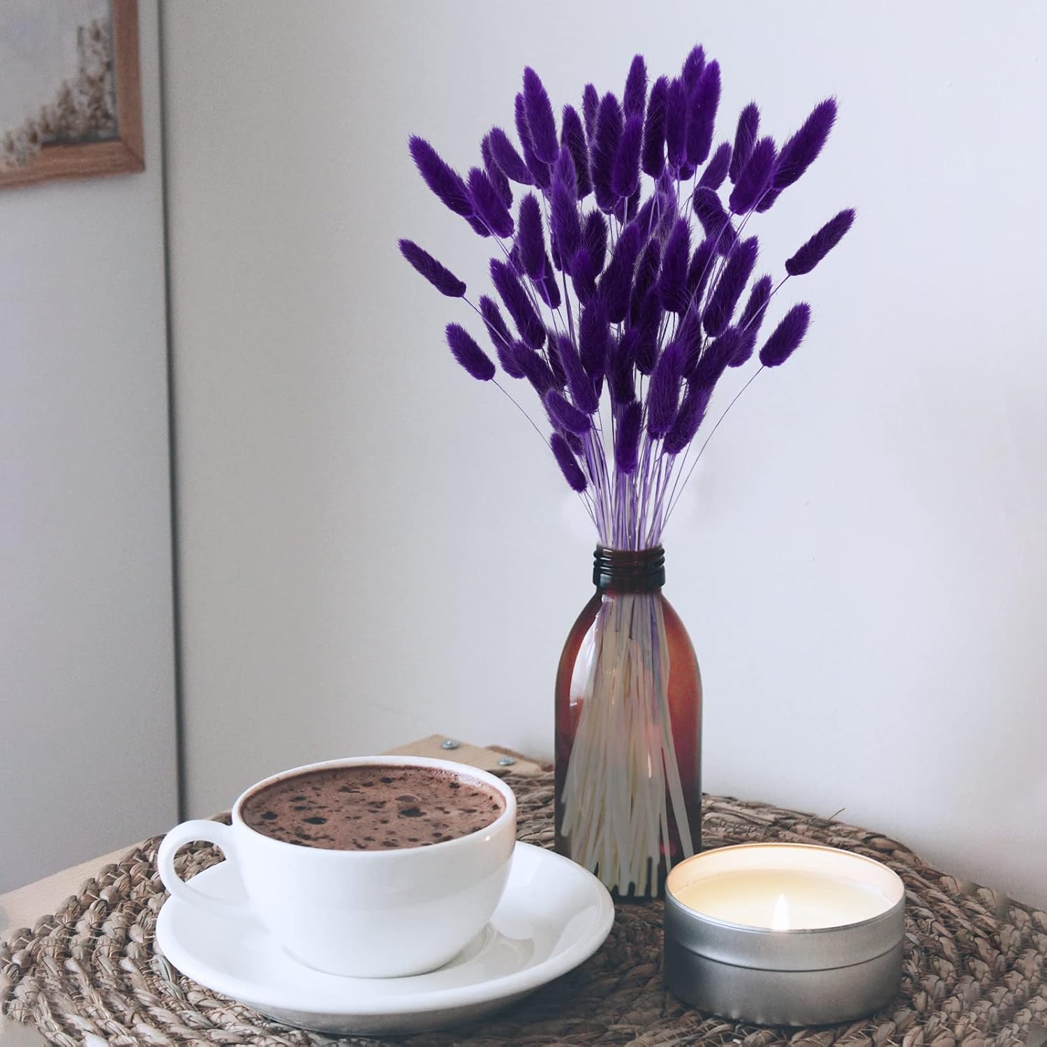 100 Pcs Bunny Tails Dried Flowers, Natural Dried Bunny Tails Grass Dried Lagurus Ovatus Rabbit Tail Grass for Flowers Arrangements DIY Craft Wedding Party Home Table Decor (Blue)