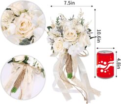 CEWOR Wedding Bouquets for Bride Bridesmaid, White Champagne Artificial Roses Flowers Wedding Decoration (7.5in)